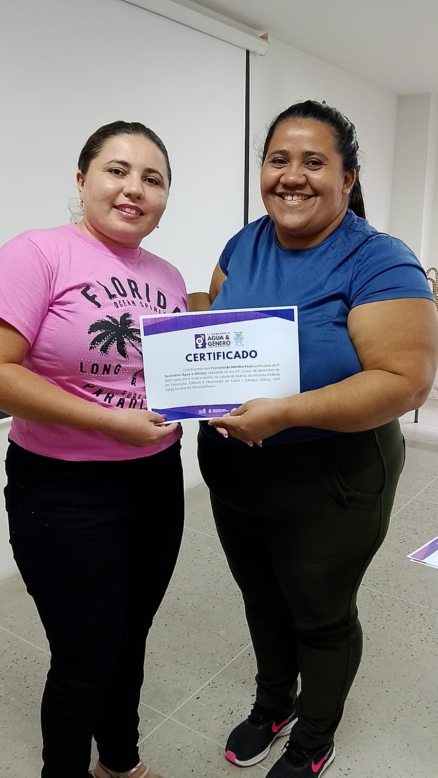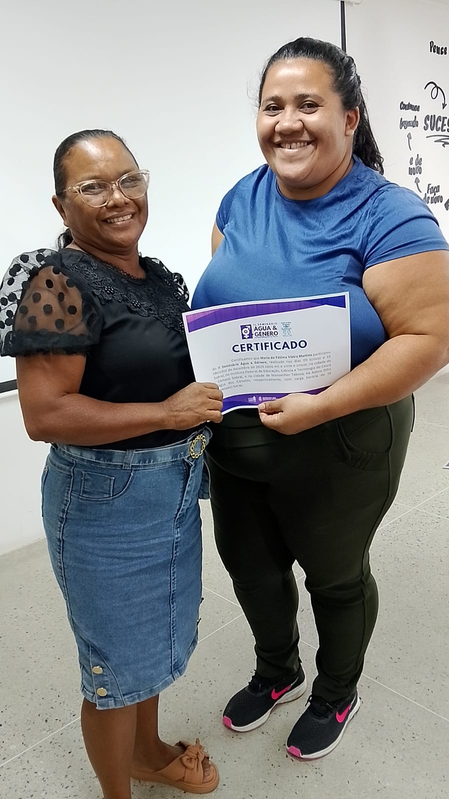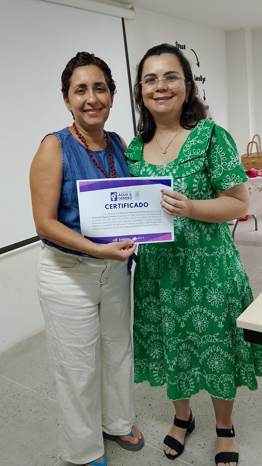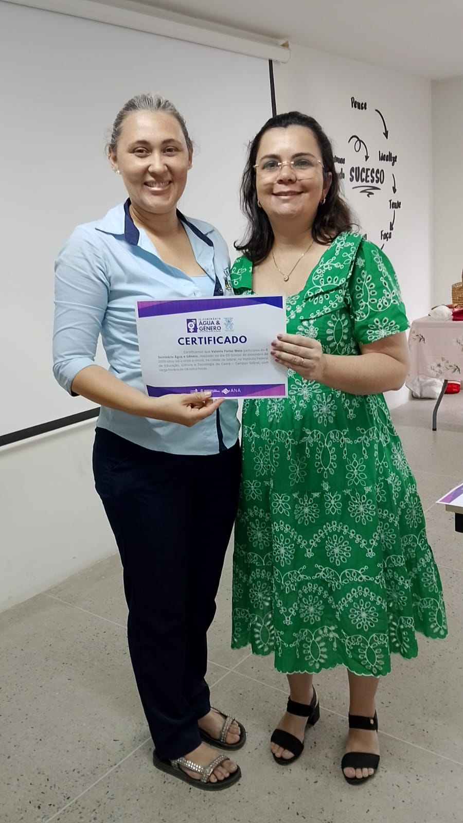 A programação contou ainda com a entrega de certificados às mulheres que participaram do II Seminário Água e Gênero, realizado em dezembro de 2025, com atividades em Sobral e Monsenhor Tabosa.